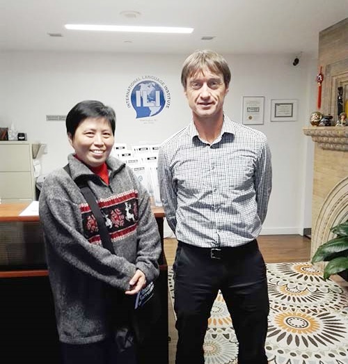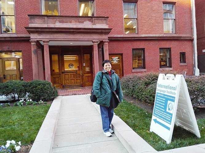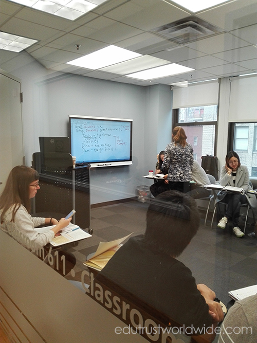 ทางเข้าด้านหน้าสถาบัน บรรยากาศห้องเรียน ทางเดิน และนักเรียนไทยที่สถาบัน ILI