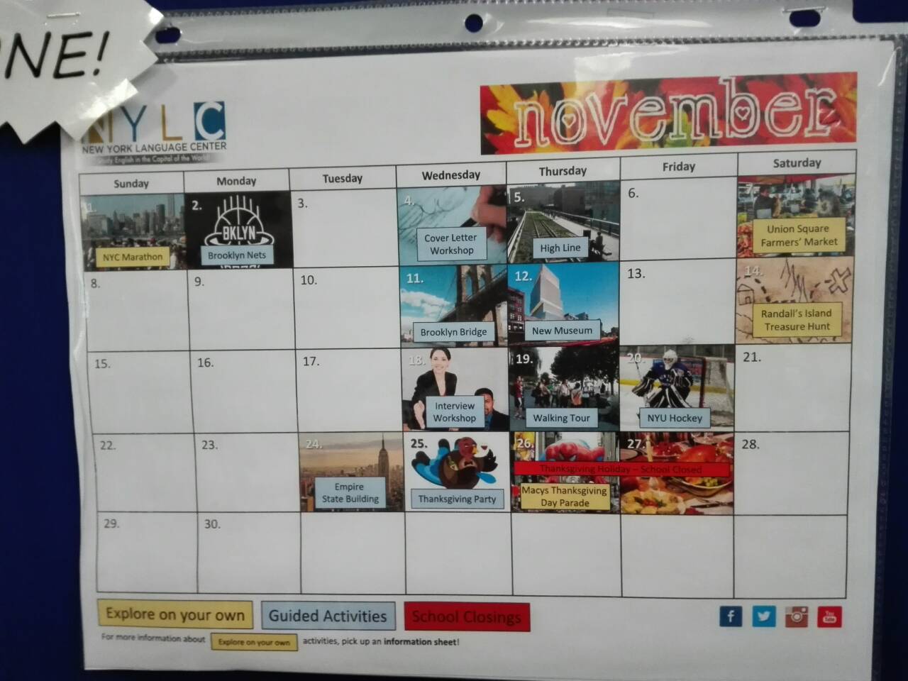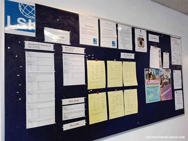 ห้องเรียนและ boards แสดงกิจกรรมต่างๆที่ NYLC จัดขึ้นทุกเดือนเพื่อให้นักเรียนร่วมสนุกและช่วยพัฒนาการการใช้ภาษาอังกฤษไปในตัว