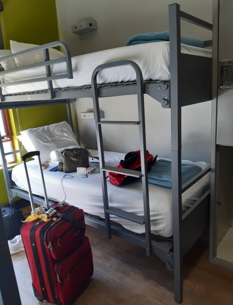 เมื่อถึงเวลาเช็คอินเจ้าหน้าที่ก็บริการได้ดีมาก และฉันได้อยู่ห้อง 408 ซึ่งเป็นห้องรวมสำหรับผู้หญิงทั้งหมด 6 คน แต่วันนั้นมีแค่ฉันคนเดียว และฉันได้เตียงเบอร์ 3
